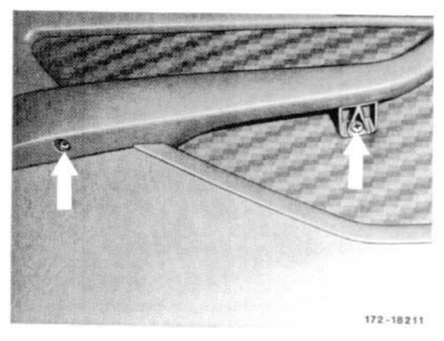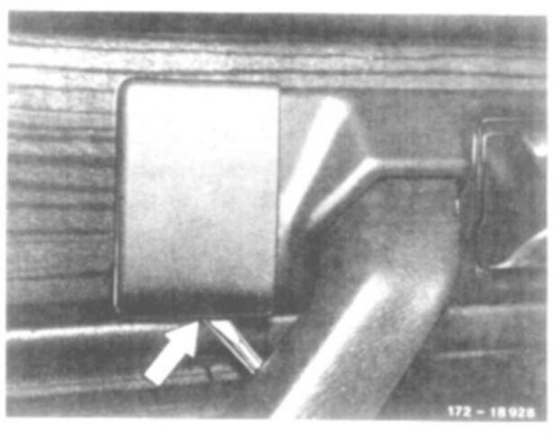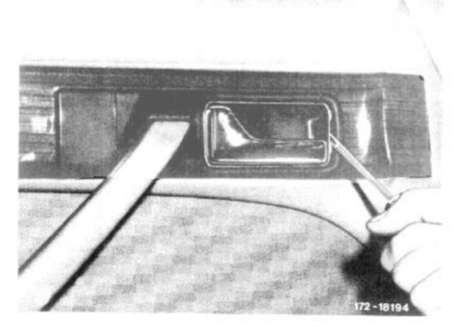 3 Remove actuating switch of electric window openers at rear doors. For this purpose, unclip springs below and at top on switch with a flat, wedge-shaped tool (flattened welding wire, if applicable, pull out switch and separate plug connection).