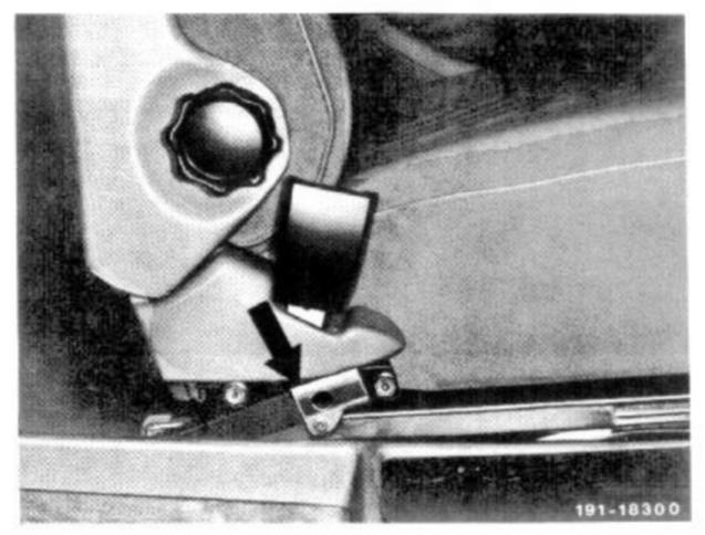 1 Unscrew screws at front on both seat guide rails, while pushing driver's seat toward the rear and height adjustment down.