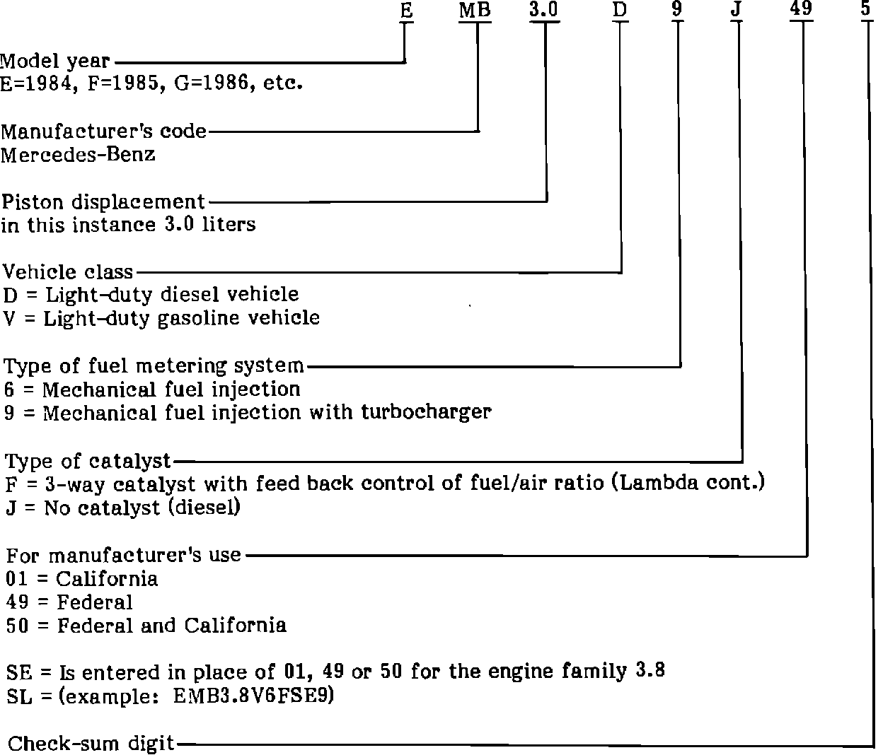 EMB3.8V6FSL7 Engine 116.962 (Model 380SL) Federal and California