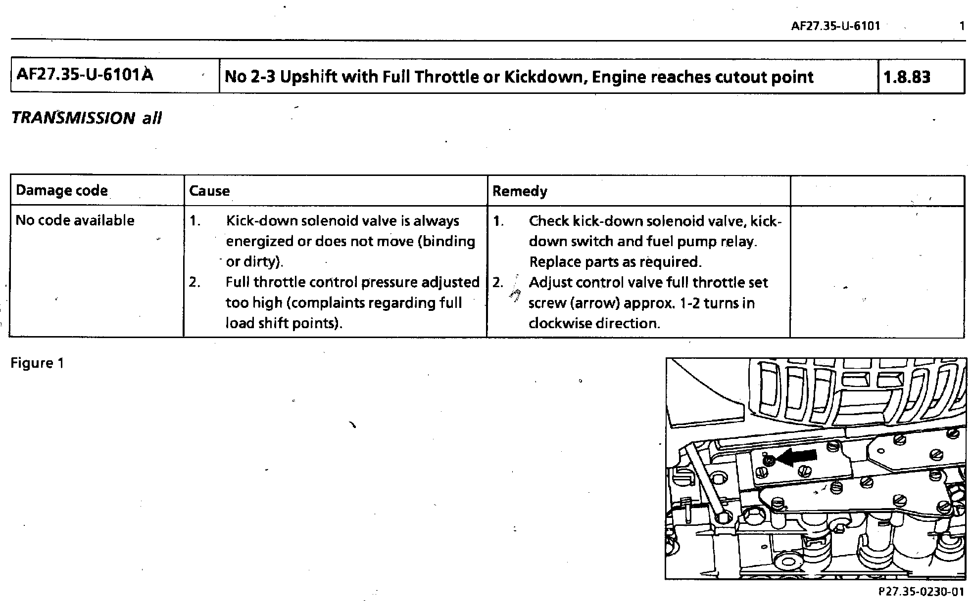 A/T - No 2-3 Upshift at Full Throttle/At Engine Cutout