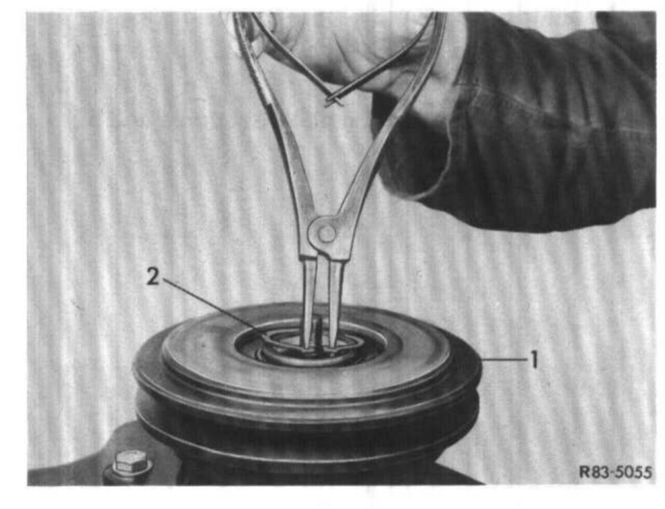 7 Check pulley for unobstructed operation. Then insert locking ring (2) with flat side down.