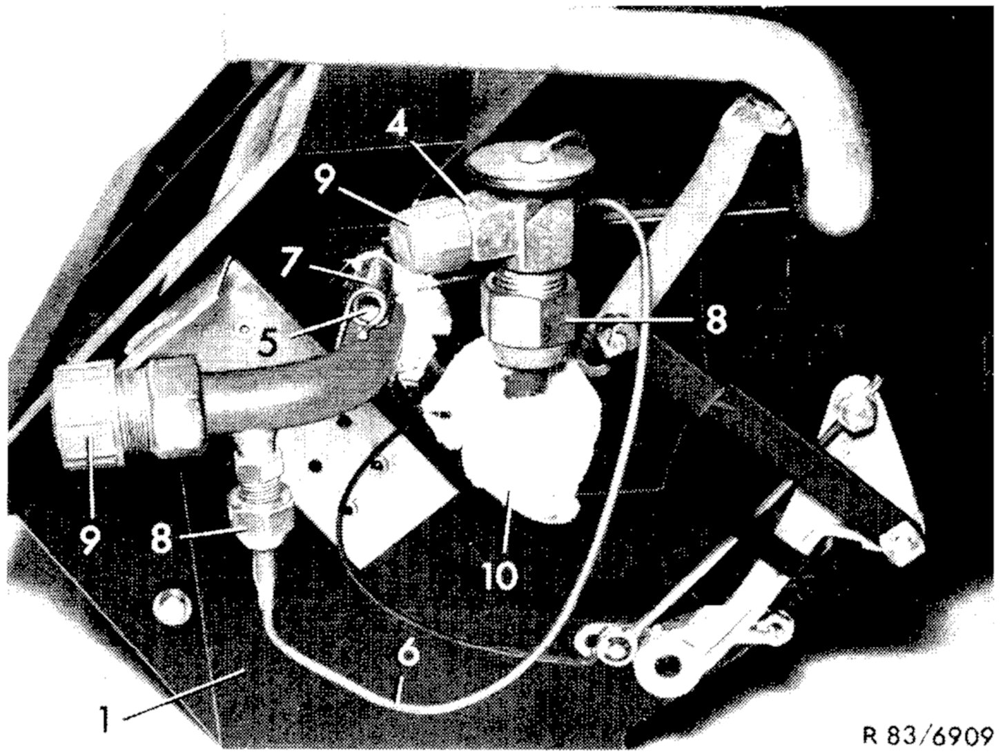 7. Install air hose for lefthand round nozzle and cover at left under instrument panel.