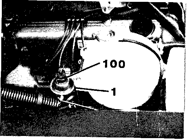 2. Install the acceleration enrichment switch (100) on the coolant expansion tank bracket, using bracket (1), a speed nut and sheet metal screw (Figure 1 and Figure 2).