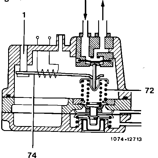 (72) via the bimetallic spring (74) and the cold start control pressure is lowered (Figure 7).