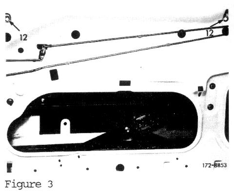 4. Raise window until the front edge of guide bracket (6, Figure 1) and front edge of window are in alignment. Tighten bolts (12, Figure 3).