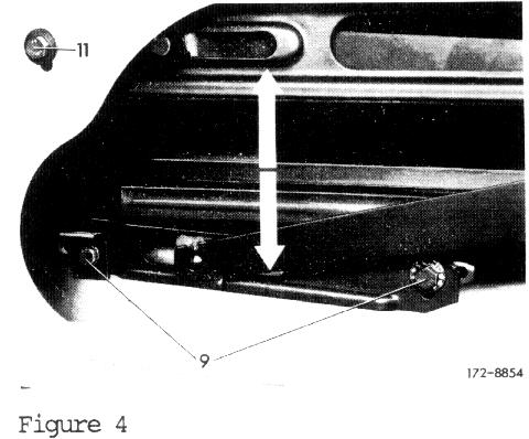 Correction can be made by loosening two bolts on rear lifting rail (9) and adjusting window. Retighten bolts (Figure 4).