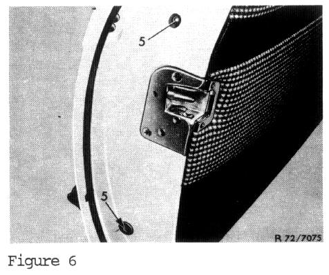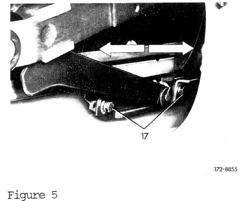 6. Remove plastic plugs and loosen both screws, (5) on rear guide rail (Figure 6).