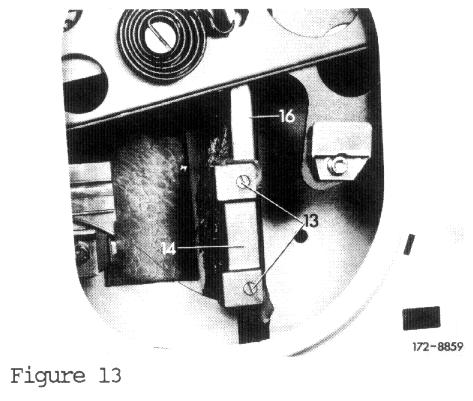 12. Adjust rear sliding block in similar fashion, except back-up set screws (13), if so equipped, one whole turn (Figure 14).