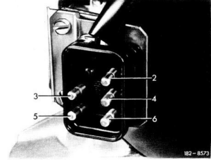 Connect an additional line to positive pole of battery and hold other end of this line against plug pins No. 2,4 and 5 one after the other.