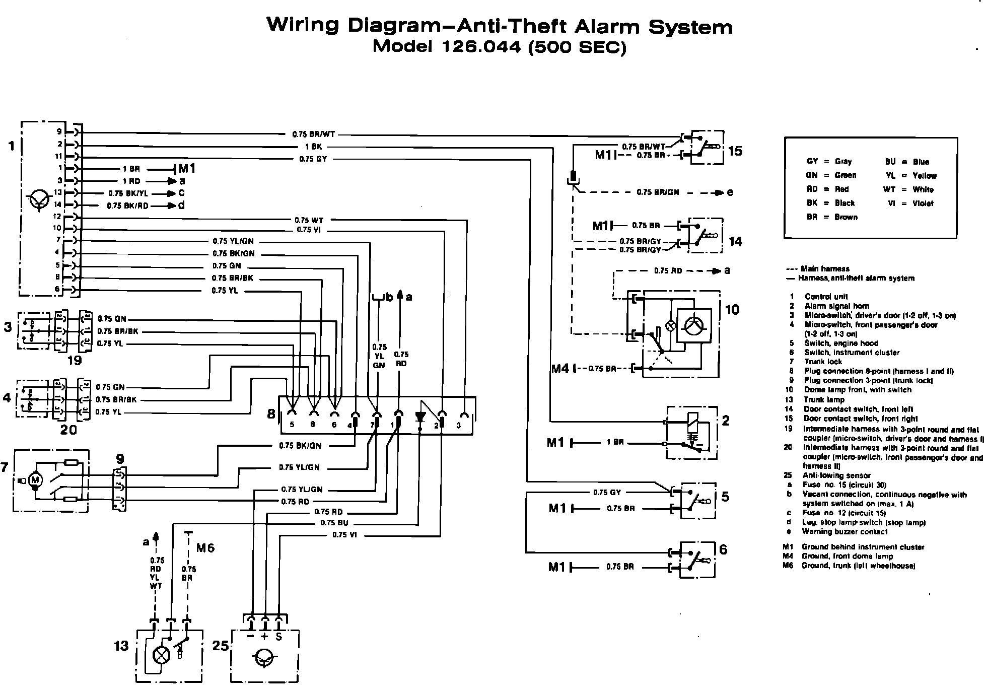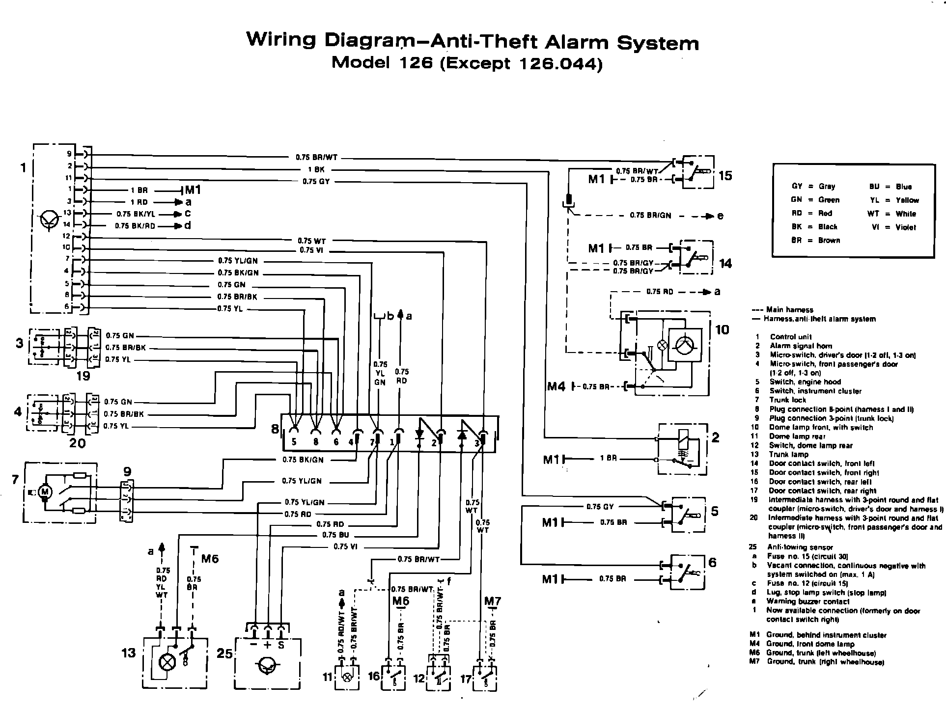 1. The wiring for the anti-towing sensor (standard on 126 models as of January 1984 production/not available on 123 models) will be included.