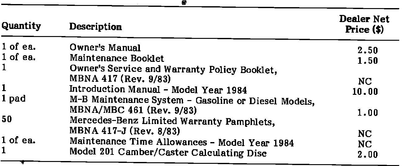 Enclosed for your information are sample copies of all new technical literature pertaining to model year 1984 vehicles. The following items are included: