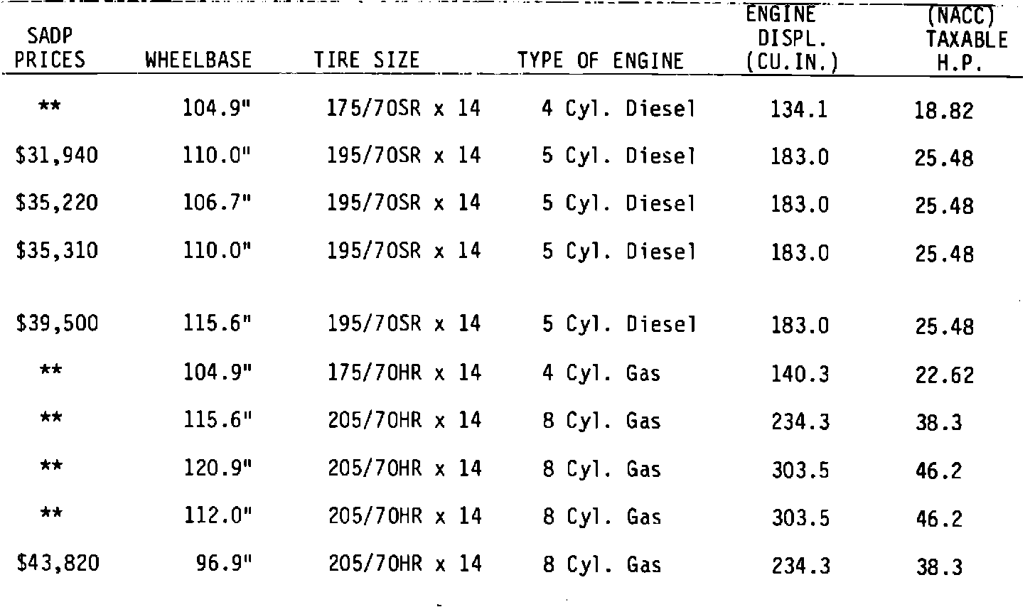 *** Due to production procedures, some 1984 registration year vehicles were