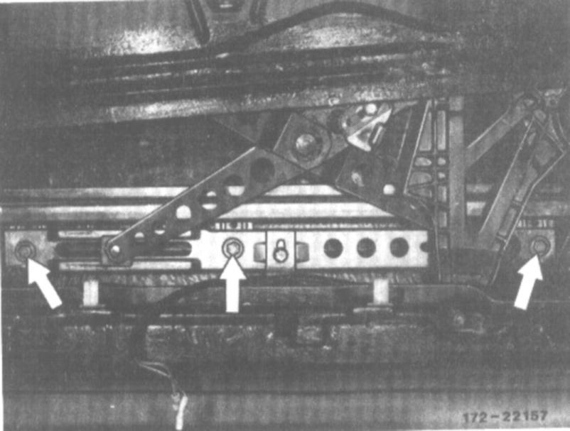 9. Unscrew nuts on window opener and remove fastening bolts from inside door panel.