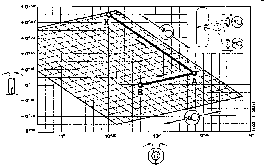 Example Measured values "X . . ." Front eccentric bolt (19) Rear eccentric bolt