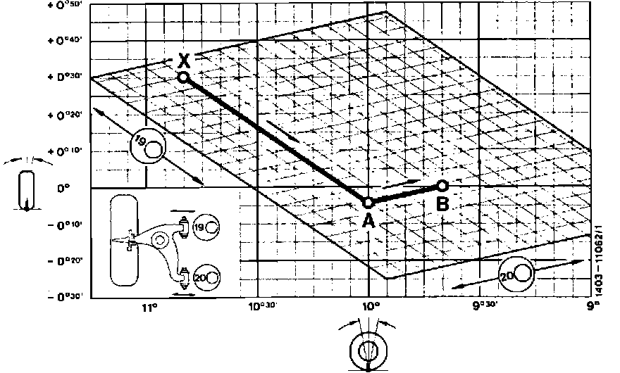 NOTE: If the caster setting deviates more than camber from the respective nominal value, proceed vice-versa and start by adjusting caster first.