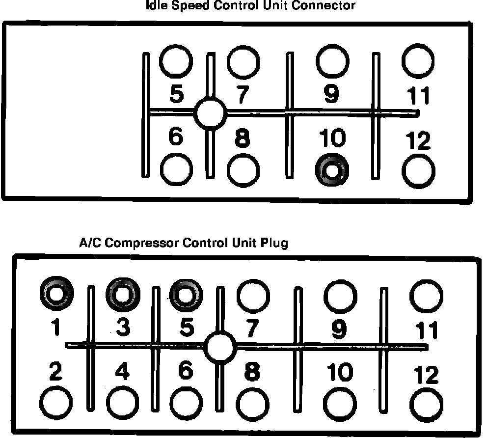 Fig. 18 Idle Speed Control Unit and A/C Control Unit Plug Terminal ID: