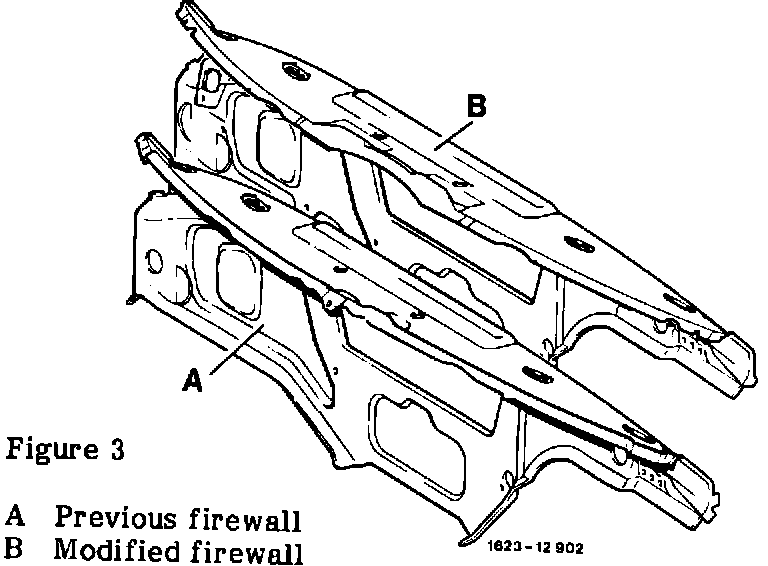 The center section of the firewall was modified to accommodate tile cross member below the windshield (Figure 3).