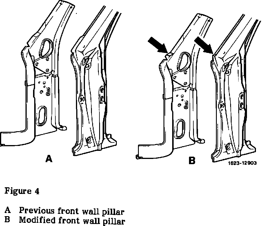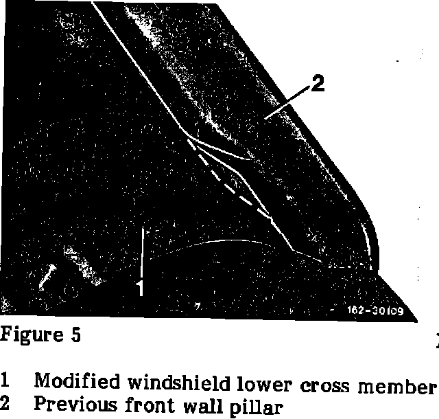 1 - Modified Windshield Lower Cross Member 2 - Previous Front Wall Pillar: