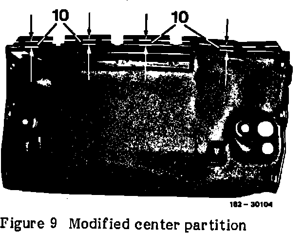4. For the repairs described under items 2 and 3, the modified center partition must be cut along the dashed line prior to installation (Figure 9).