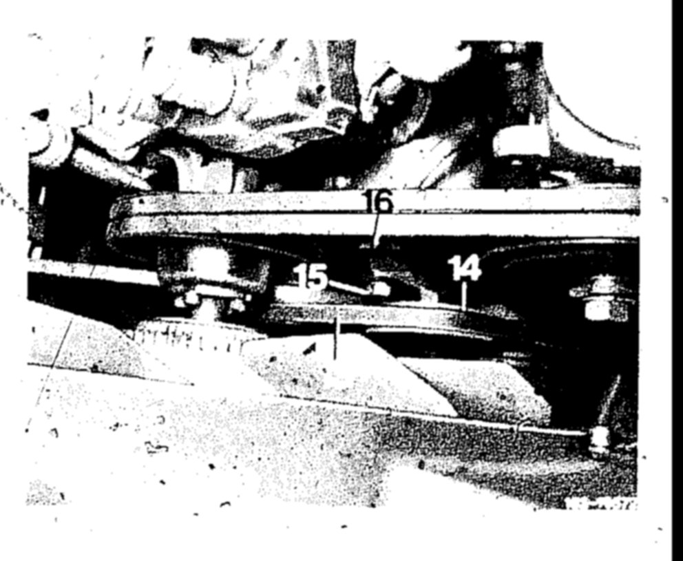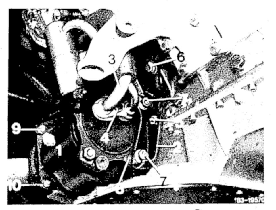 7. Unscrew screws (10 and 11) from supporting plate (12) on oil pan top and from refrigerant compressor.