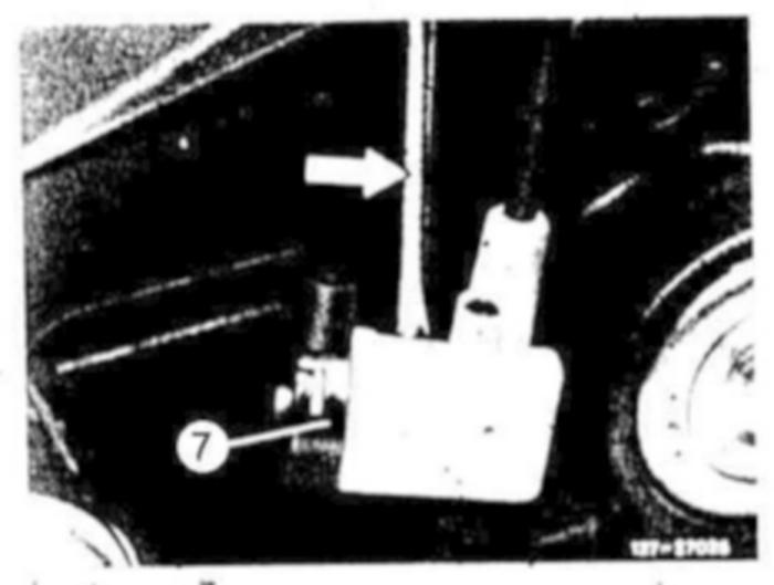 Loosen detent on transmission and disengage connecting rod. During installation, remove oil pan to permit engagement of connecting rod. Adjust control pressure cable according to item 7-9.