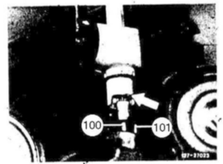 5 Introduce limiting rod (101) into bore (arrow) and insert control pressure cable.