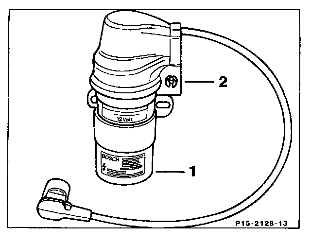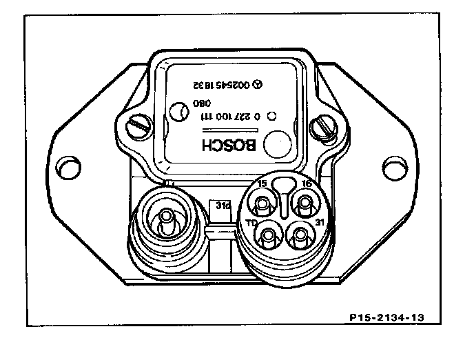 ^ The induction sensor is installed in the distributor. It produces an alternating voltage up to approx. 100 volts for actuating the transistorized control module.