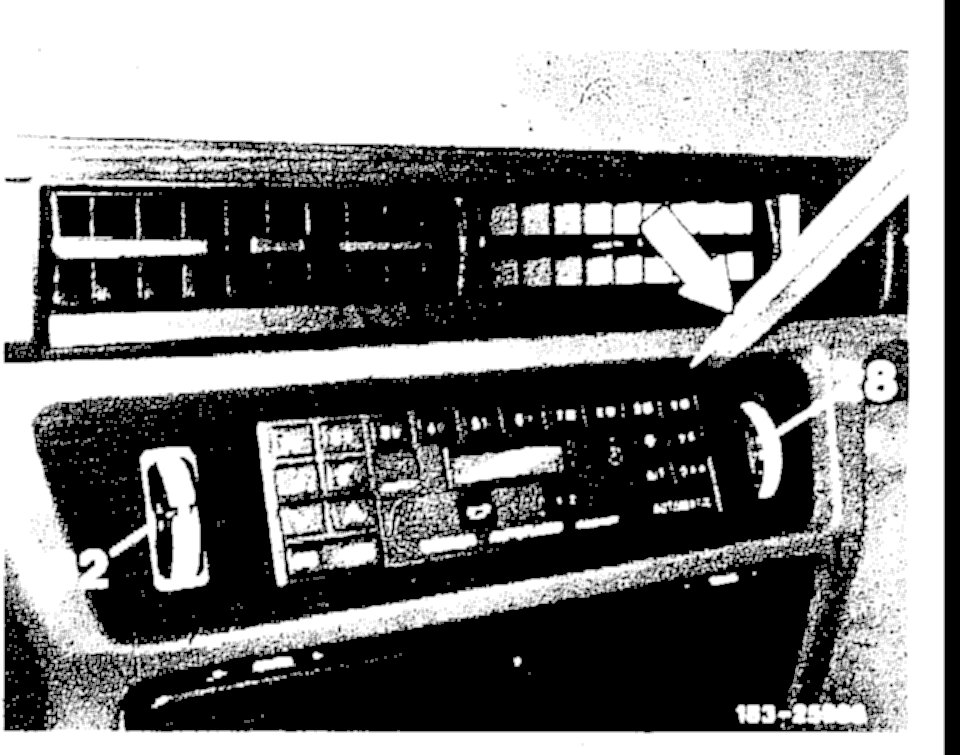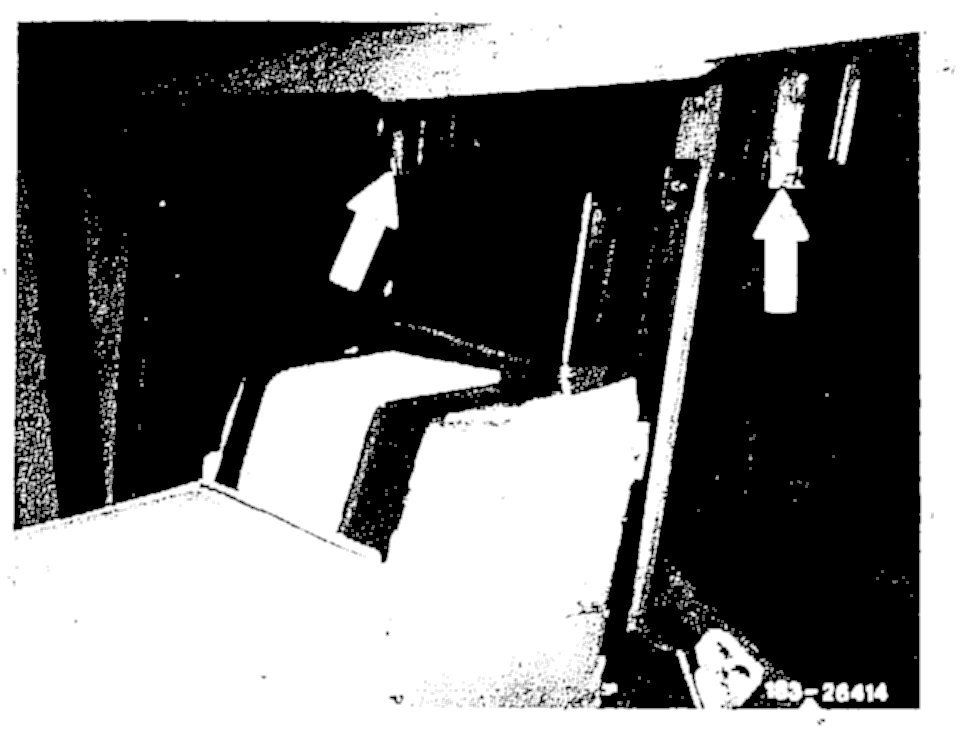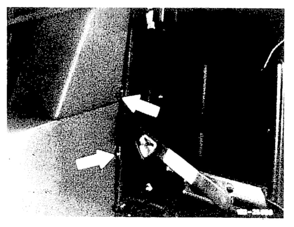 15. Remove screws retaining lower section of housing, at level of partition-window lift support (lower arrow).