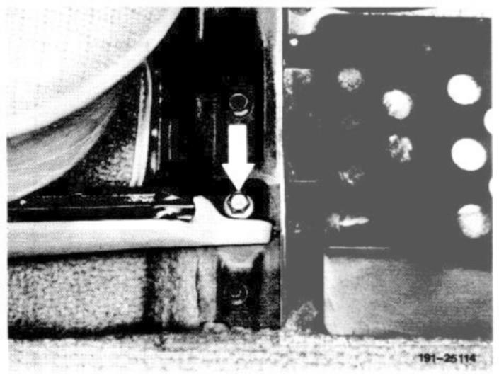 1 Slide front passenger's seat toward the rear and unscrew both screws at seat guide rails front.