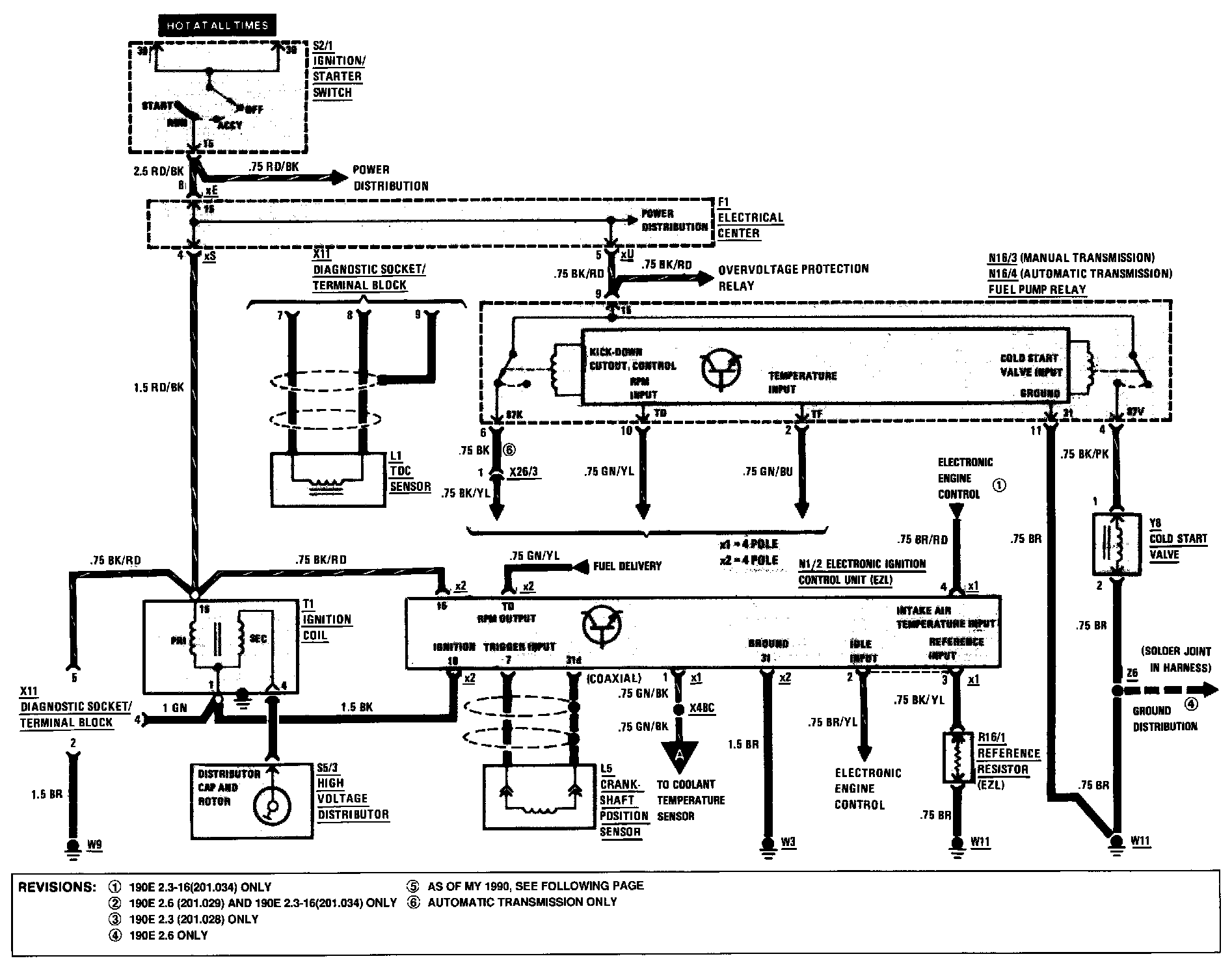 Ignition/Fuel Delivery/Diagnostic Socket/Trans. Kickdown