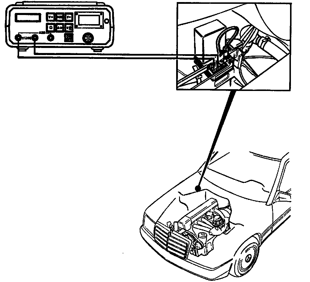 Connect voltmeter to positive and check both connections of pressure switch (S31/1) consecutively to see whether battery voltage is present. If both connections are without voltage, check actuation of the refrigerant compressor.