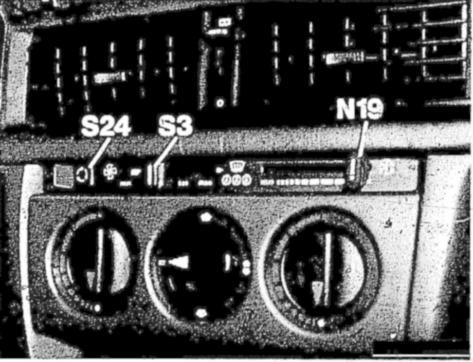 As of 10/84, the fresh/recirculated air switch (S24) has one electrical and one pneumatic connection (arrow)