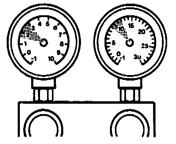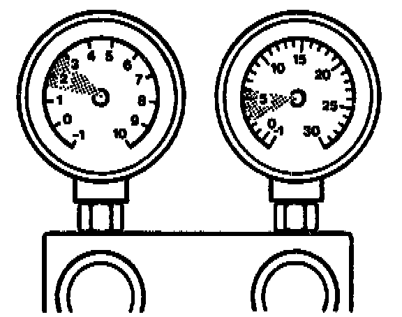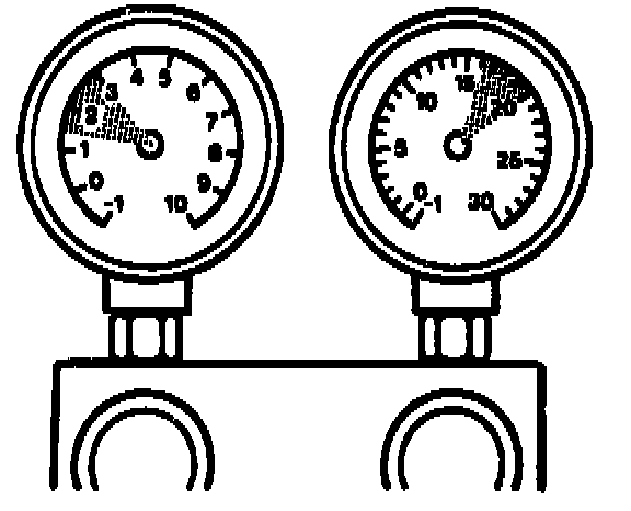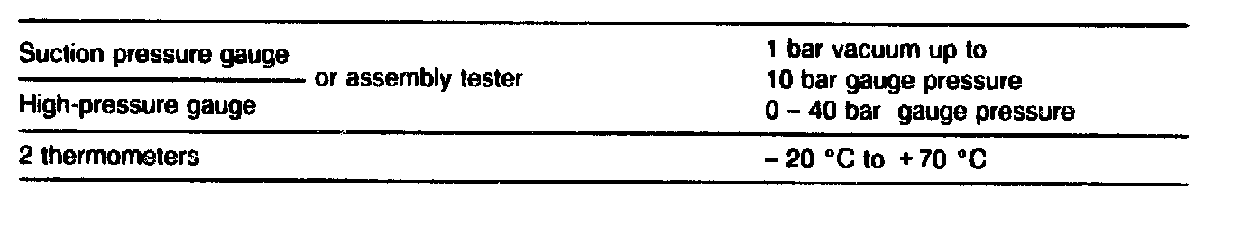 Switching off the engine and observing the suction pressure gauge. The suction pressure should rise only very slowly and not exceed 3.5 bar within approx. 3 minutes; if necessary, renew expansion valve and repeat test from paragraph 11 onwards.