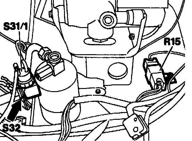 3 Check function of auxiliary fan by switching on ignition and shorting the two plugs at the pressure switch (S32).