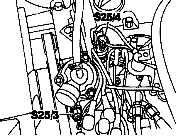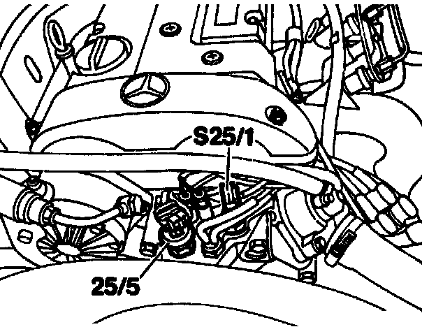 In vehicles with 5 and 6-cylinder engine, only the auxiliary fan should operate in the 1st stage. For models 201.024 (AUS), (J) and 201.028/034, then connect the 1-pole coupling at temperature switch S25/4 or S25/5 to positive. For models 201.029/034/035 ECE/CAT/126 and 128, bridge the 2-pole coupling at temperature switch S25/4 or S25/5. Auxiliary fan must operate in the 2nd stage.