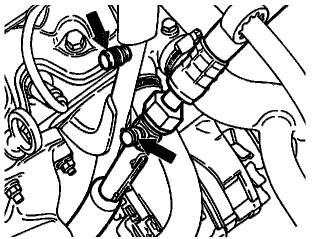7 Unscrew closing caps (arrows). Then connect hose lines of suction pressure or high-pressure gauge to the service valves. Ensure that the connecting nipple of the hose has a thrust pin in the center.