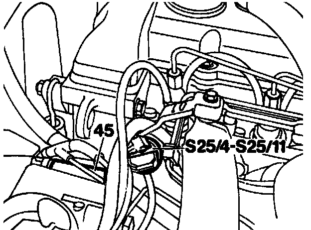 9 In vehicles with 4-cylinder engine, disconnect 2-pole coupling from 100/110 °C temperature switch (S25/4) and bridge so that the electromagnetic clutch of the engine fan runs during the entire test sequence.
