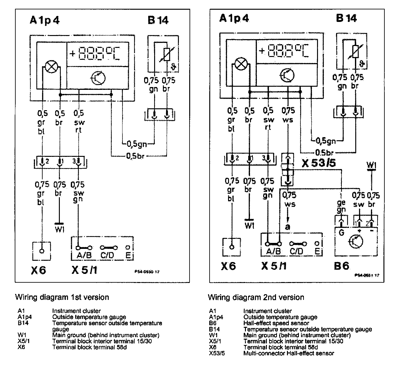 - Check outside temperature gauge (A1p4). Enter resistance values on 2-pole coupling by means of resistance decade.