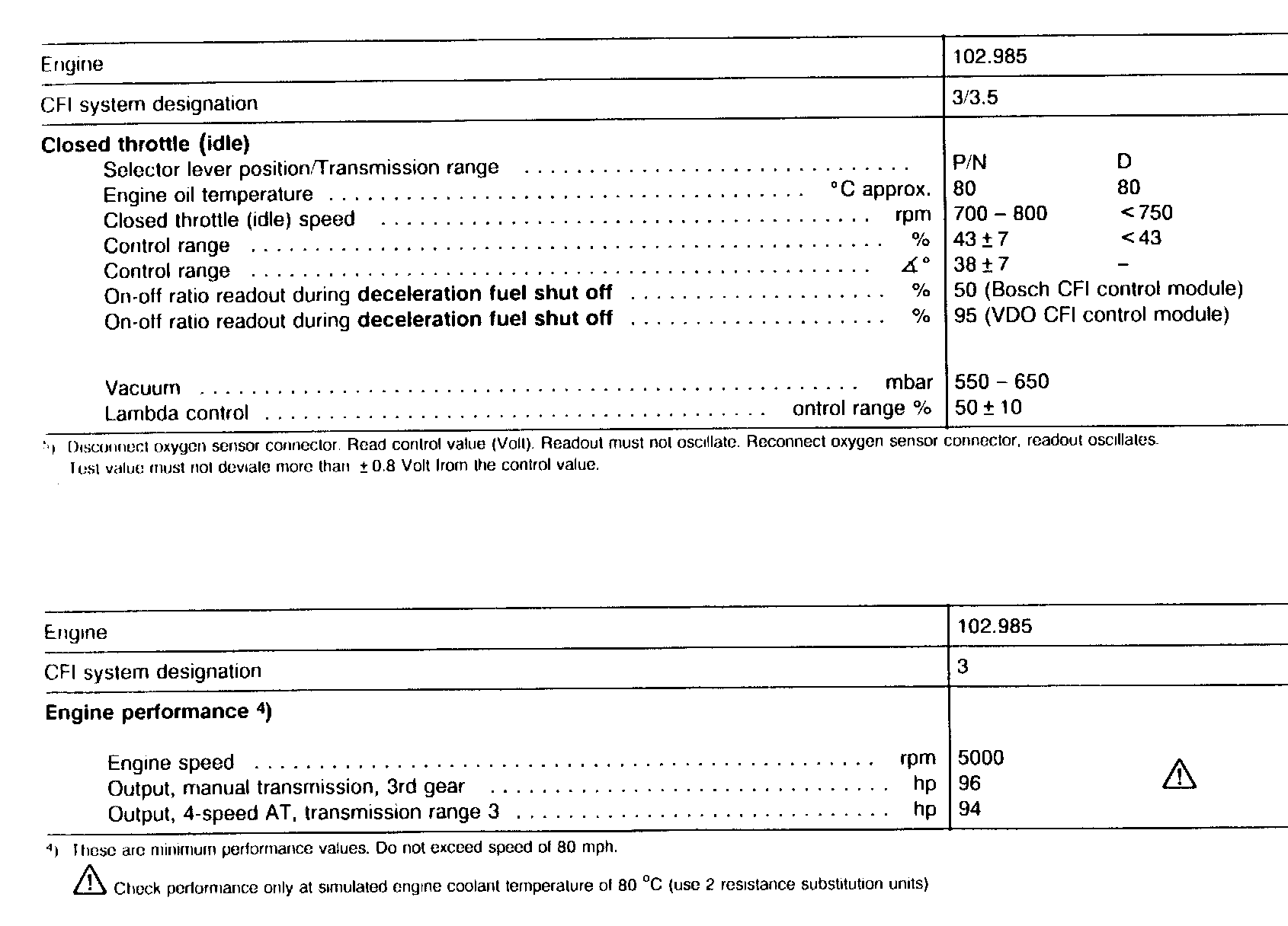 Test and Adjustment Data [Specifications]