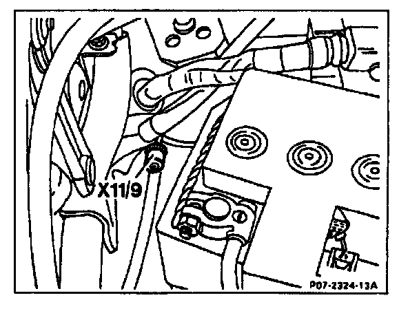 The idle air control valve test connection X11/9 is located on the right in the component compartment.