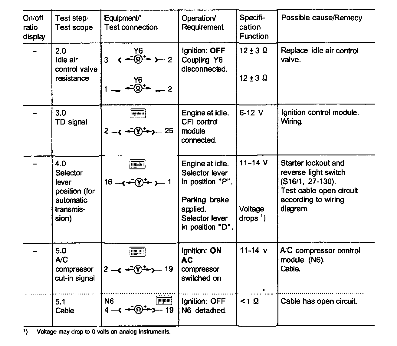 - If the specified value of a test step, e.g. step 4.0, is in order, it is not necessary to perform test step 4.1. Different component designations are possible depending on the wiring diagram or vehicles with optional equipment These designations are given in parentheses. This has no effect on the test (connections, specified value).