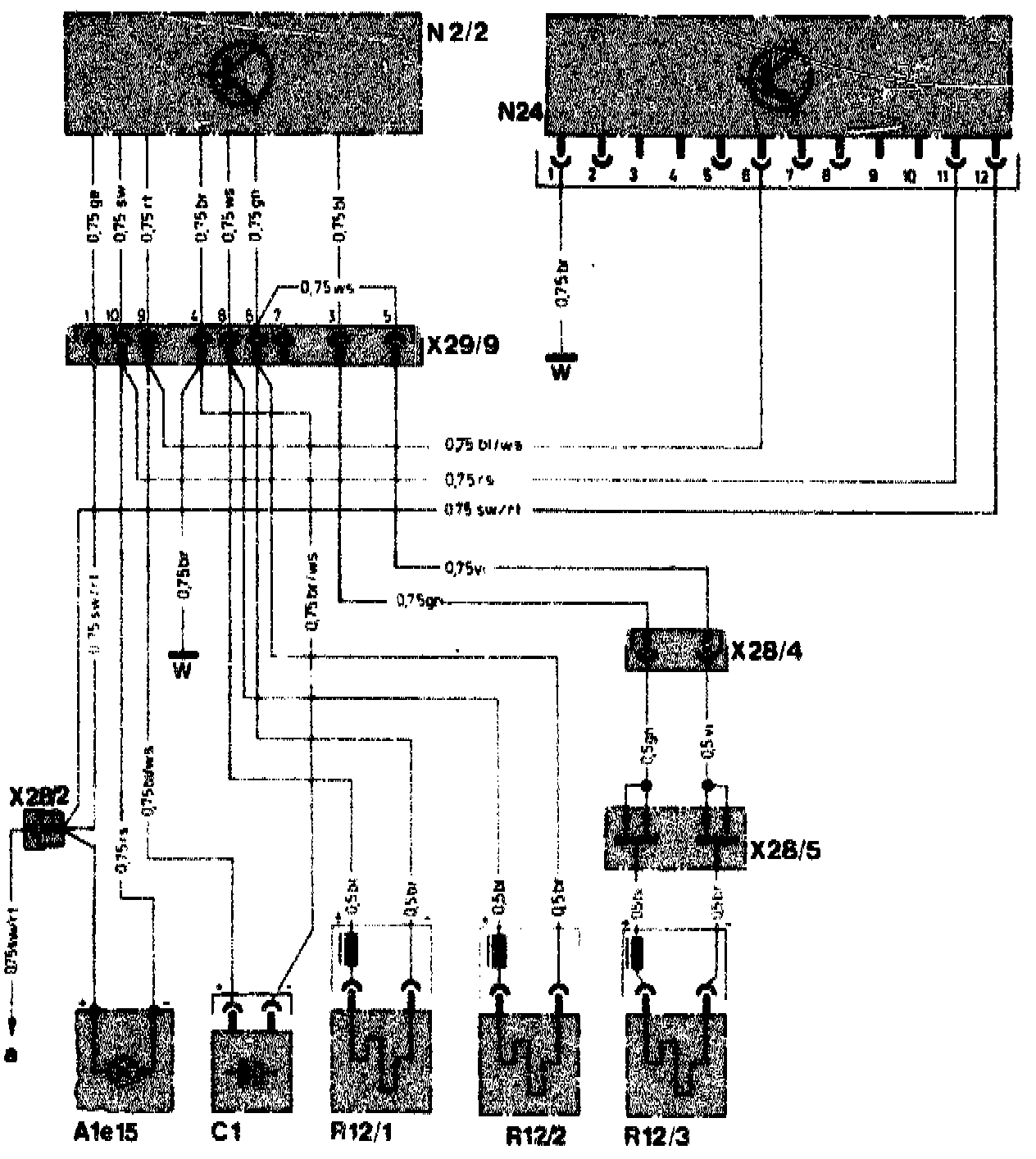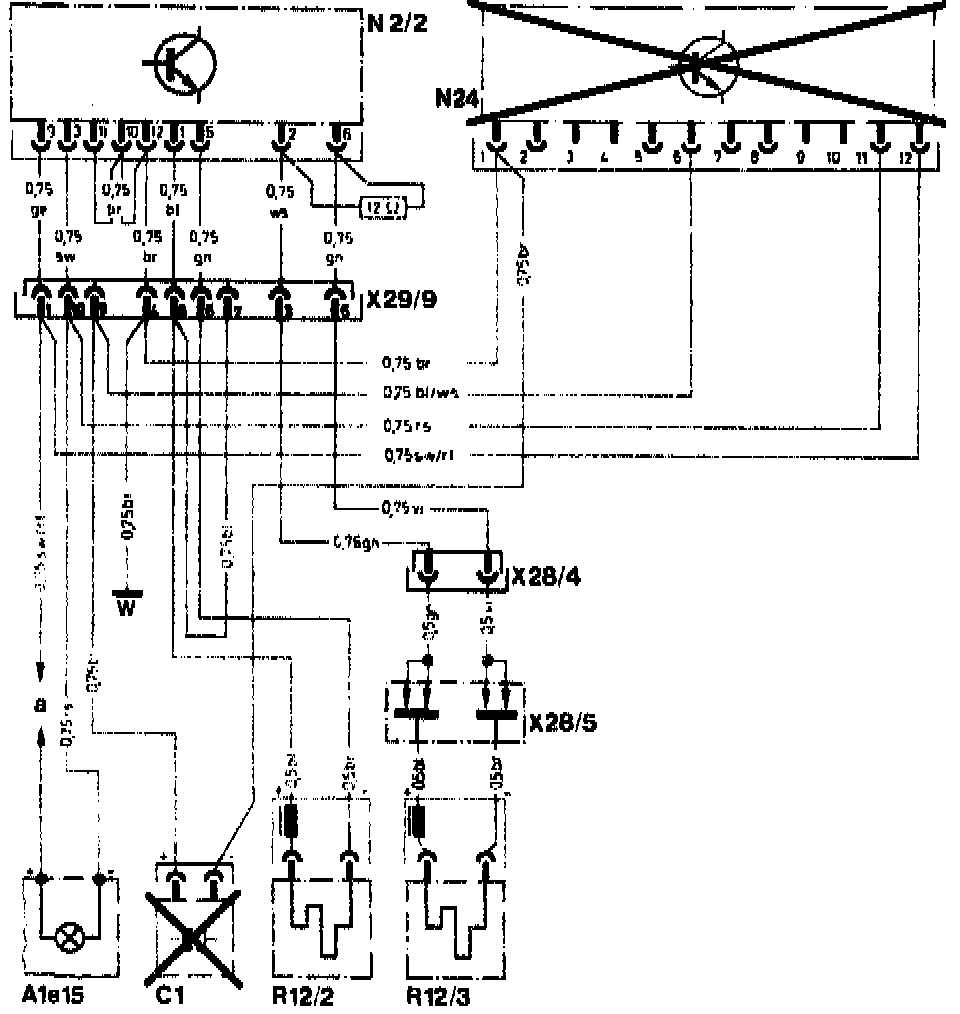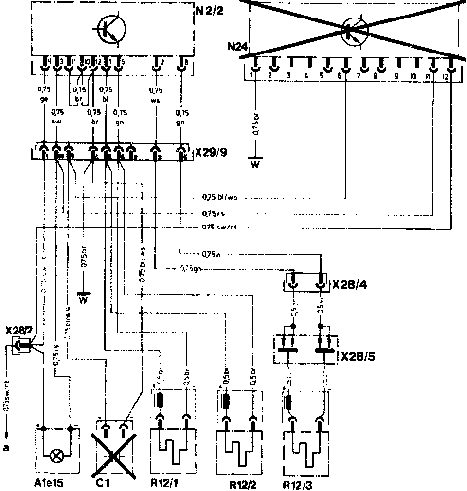 a Electrical center, terminal 15 R via. X28/2 (terminal 15 R on N2/2, N24, A1e15)