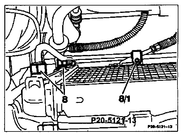 5. On vehicles with automatic transmission, unscrew oil cooler lines (8) and retaining clip (8/1) at the bottom of the radiator.