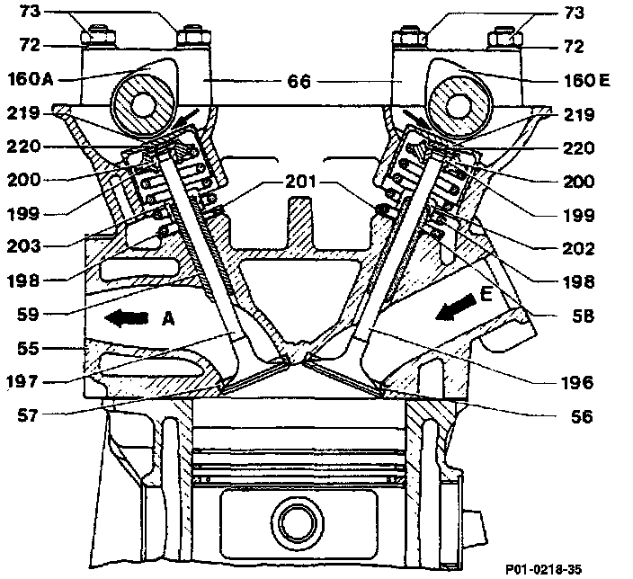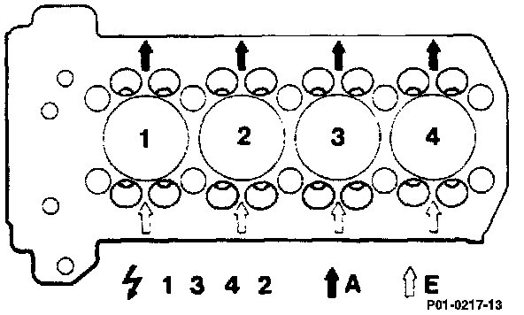 Note layout of intake and exhaust valves.
