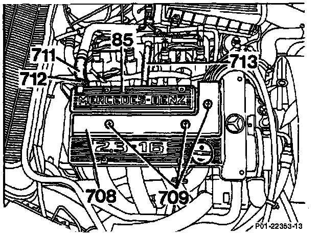 - Loosen hose clamp (712) and pull off the hoses (711 and 713) on the cylinder head cover (85).