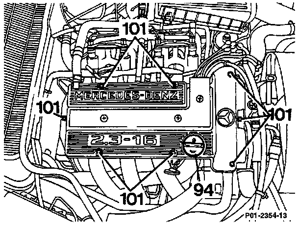 - Remove cap nuts (101) and remove cylinder head cover.