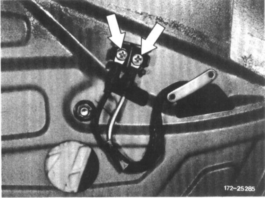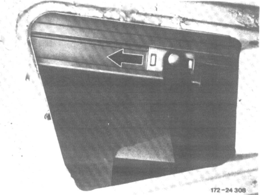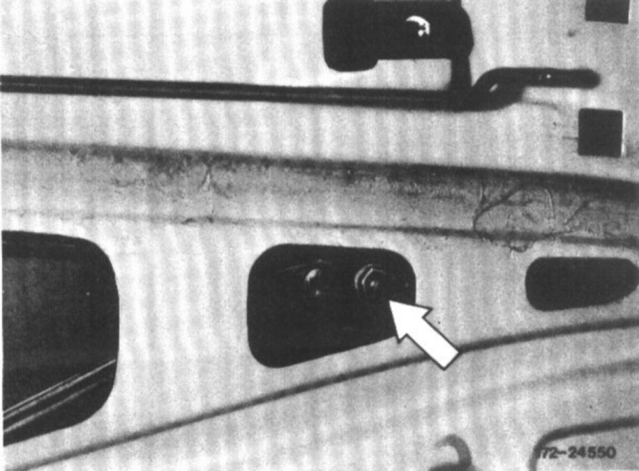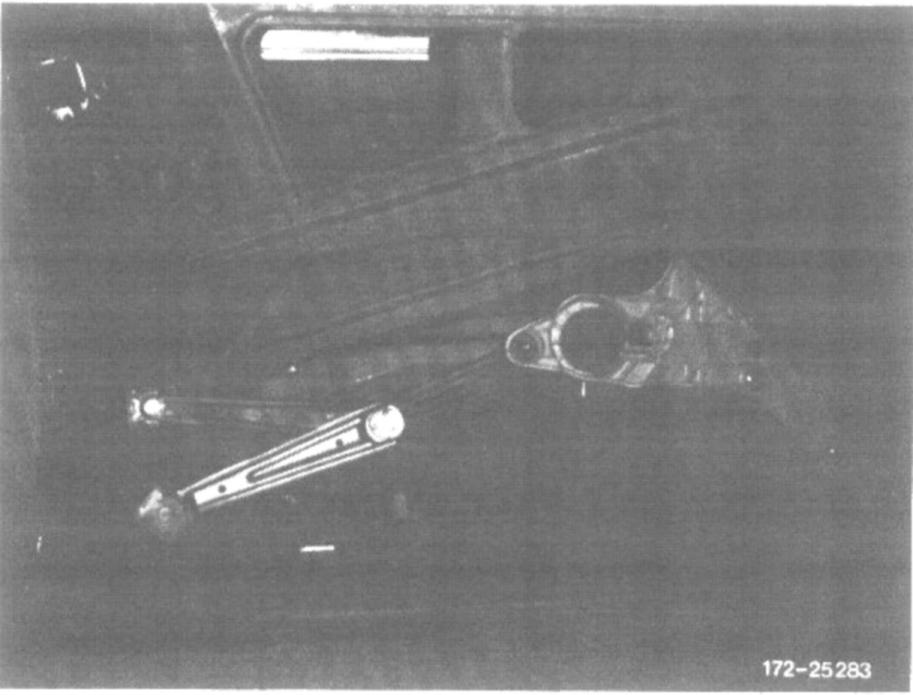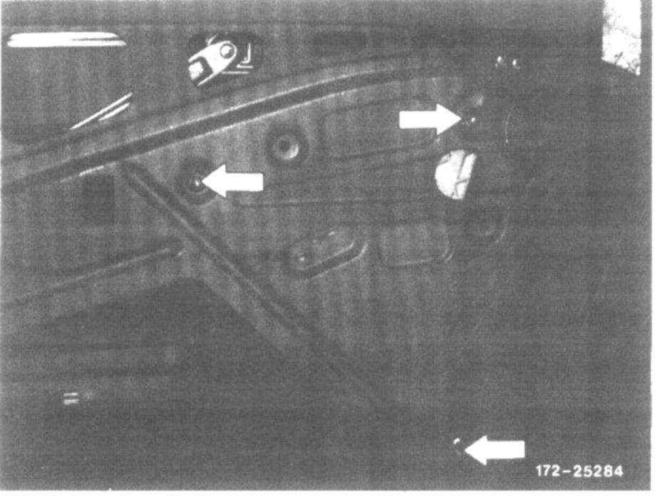 3. Crank window down until nut on window opening rail can be seen at the front in cutout of inside door panel.