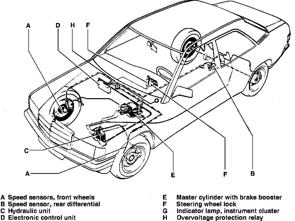 A7/N31 ABS Hydraulic Unit Left front corner of engine compartment