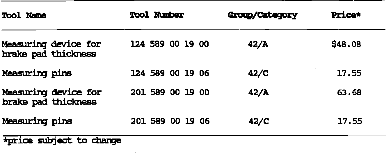 SUBJECT: MEASURING DEVICE FOR BRAKE PAD THICKNESS MODELS 124 AND 201