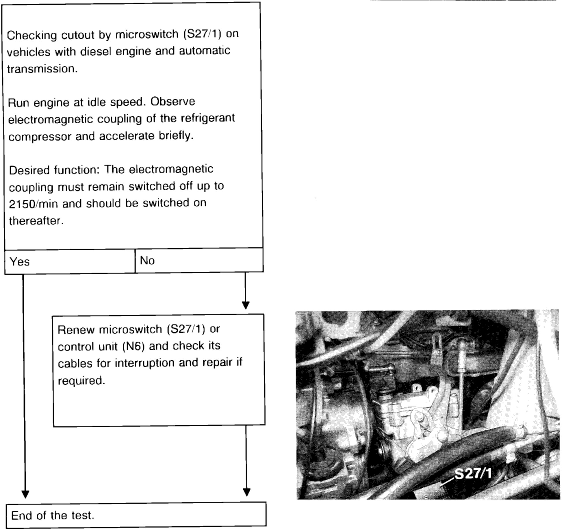 Checking the cut-out of the electromagnetic coupling of the refrigerant compressor via the compressor cut-out